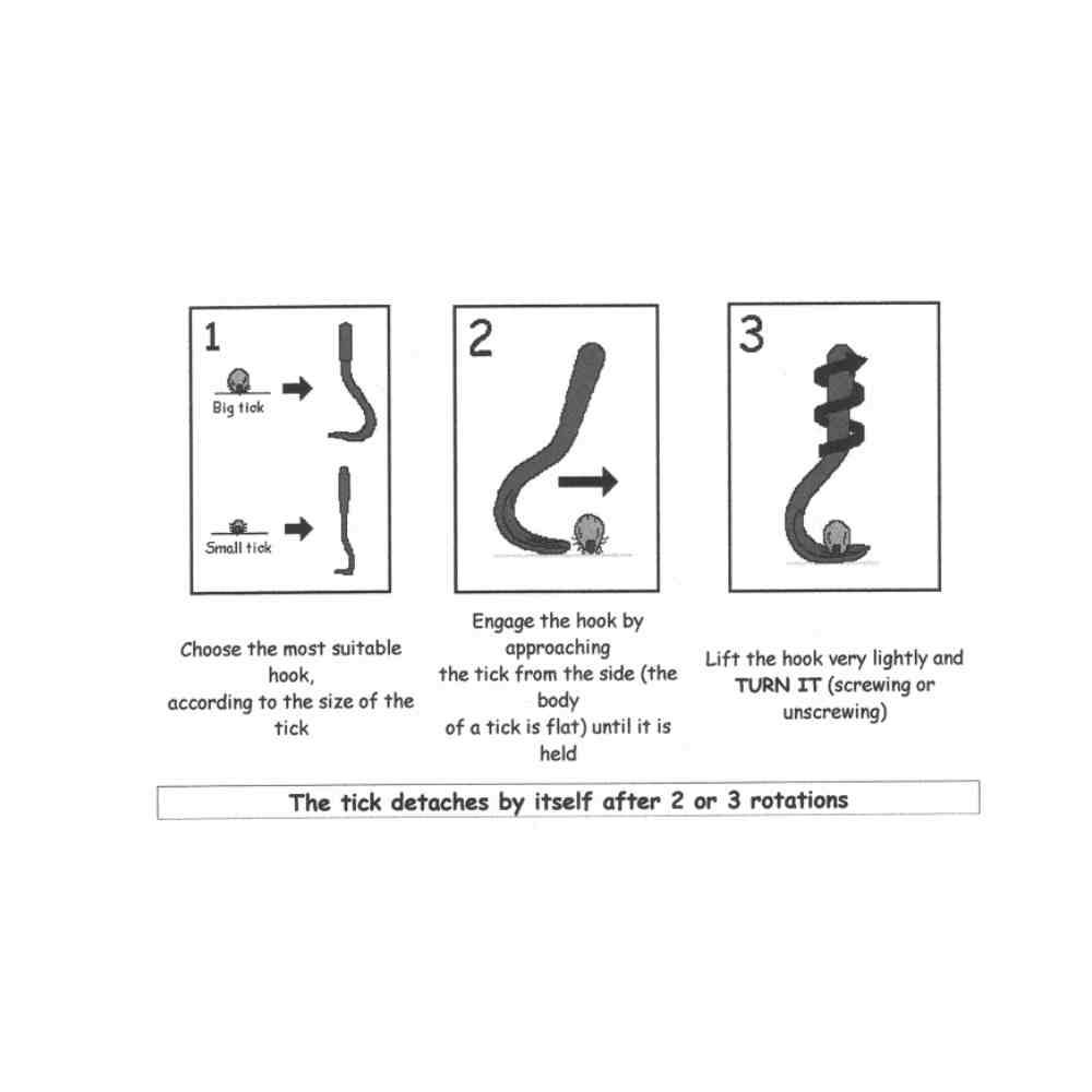 - without compressing the abdomen of the ticks, minimizing the transfer agents (Lyme's disease, babesiosis...)