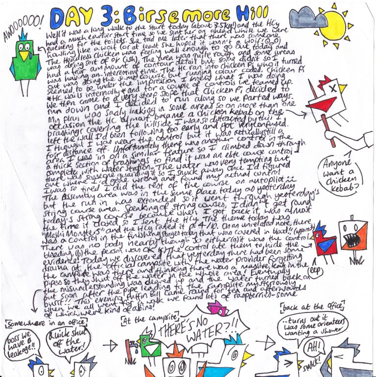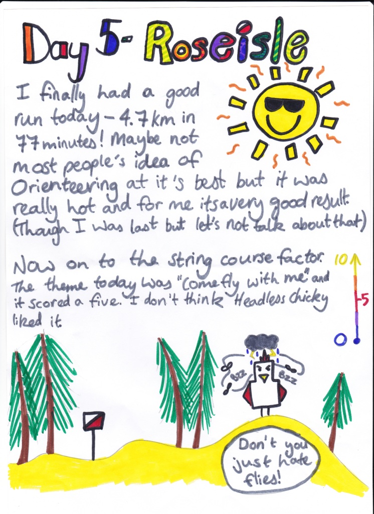 very turned around in but I luckily came out right next to the control! The Headless Chicky got her own scare when she discovered that one of the other orienteers had