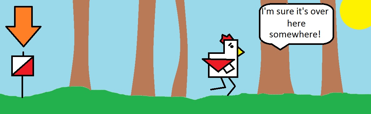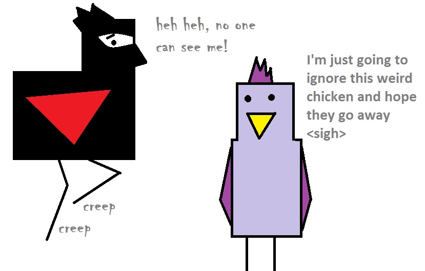 looks sad* and I didn't want to tire myself out.I was meant to be shadowing (following some distance behind) Headless Chicky and her friend (Smarty Chicken) but