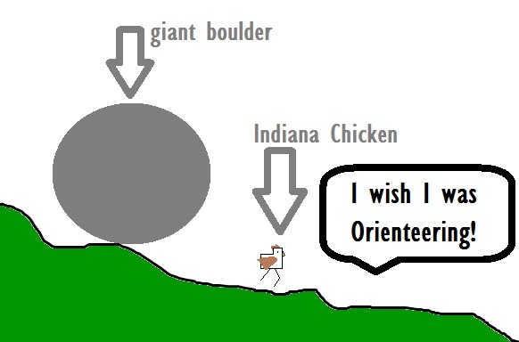 Now would probaly be a good time to introduce Indiana chicken - a member of the club that now studies archaeology but still comes orienteering occasionally. Anyway